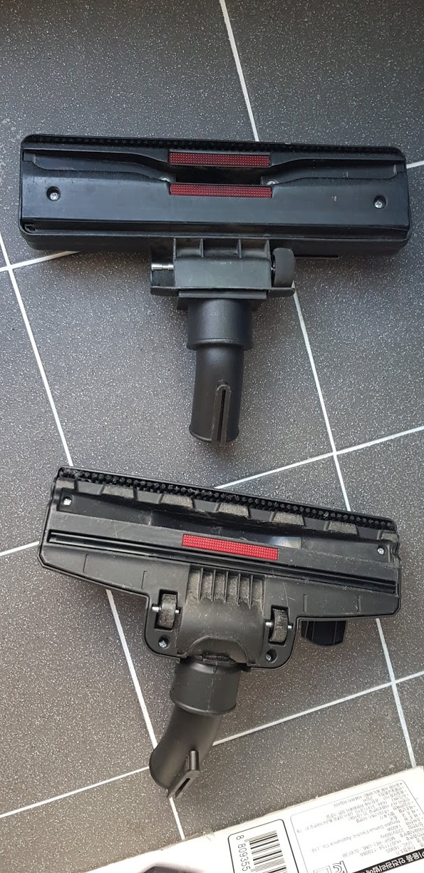위의 것이 기존 것입니다. 바퀴가 하나 없지요? 옆으로 잘 빠질 수 있겠지요. 아마도 소비자들의 문의가 많았나 봅니다. 헤드를 아예 다시 만들었네요. 당분간 고장 없이 잘 사용하겠습니다.
