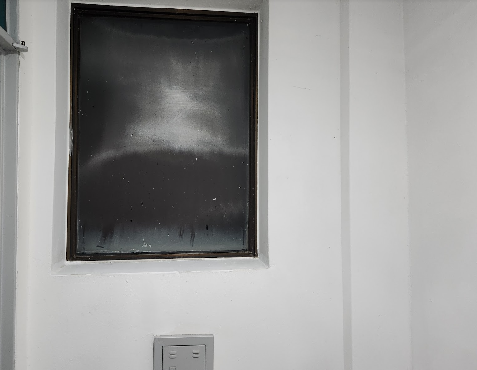 건물 주위에 쓰레기를 처리한 다음에는 입구 문을 봅니다. 유리를 보고 문에 쌓여 있는 먼지를 보고 닦아 줍니다.