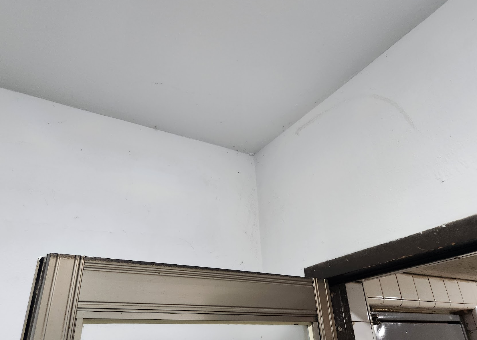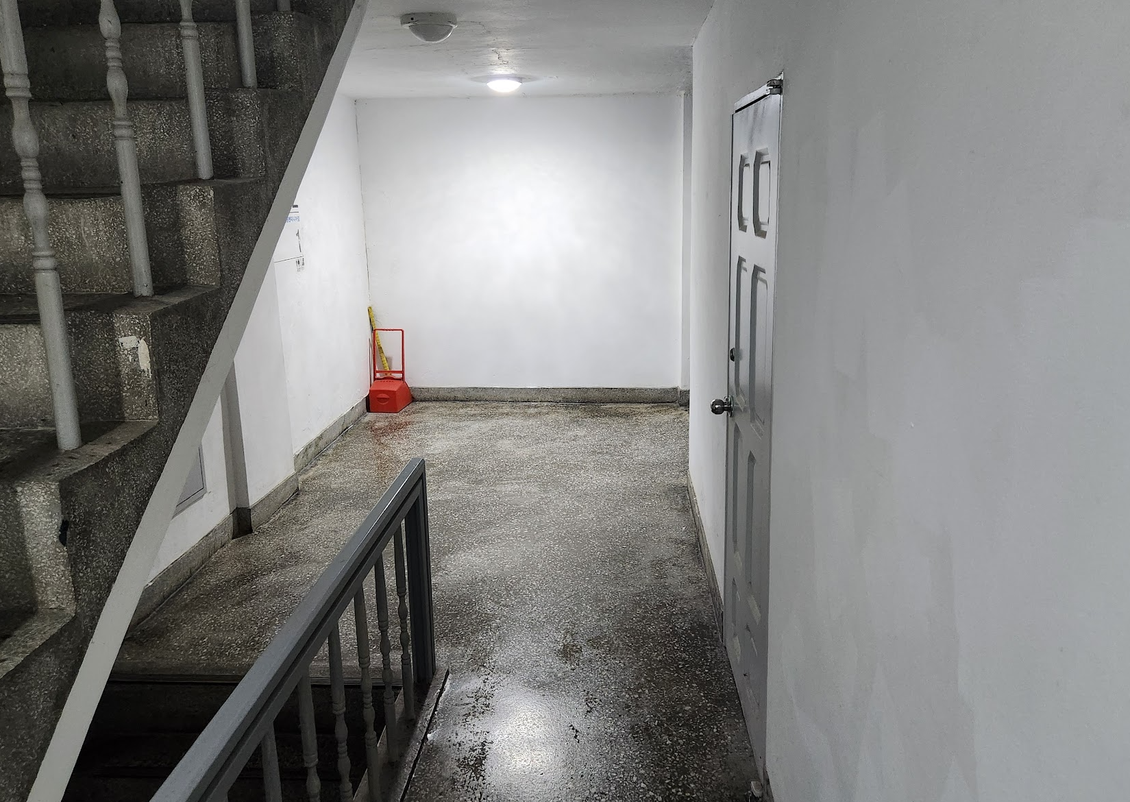 이곳은 엘리베이터가 없는 작은 빌딩입니다. 계단 난간을 닦으며 올라가면서 천장에 있는 거미줄을 확인합니다. 당연히 거미줄이 있으면 치우고 창문 틀도 닦습니다.