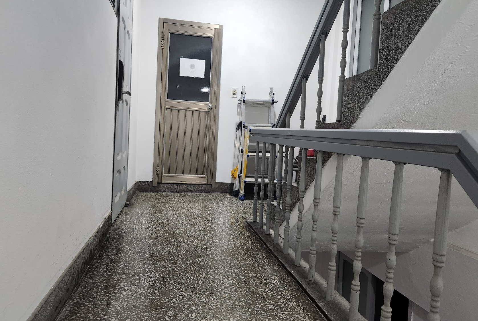 이곳은 엘리베이터가 없는 작은 빌딩입니다. 계단 난간을 닦으며 올라가면서 천장에 있는 거미줄을 확인합니다. 당연히 거미줄이 있으면 치우고 창문 틀도 닦습니다.