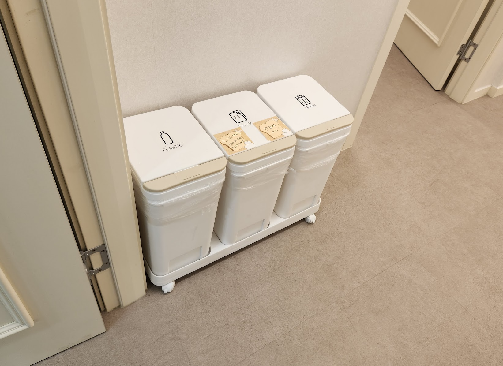 그동안 쓰레기를 비우기만 하셨지, 쓰레기통 밑에 있는 먼지는 못 보셨었네요. 싹 닦아드렸어요., 쓰레기통 자체도 지저분해서 닦았어요.