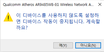 이 하드웨어 장치가 현재 컴퓨터에 연결되어 있지 않습니다....