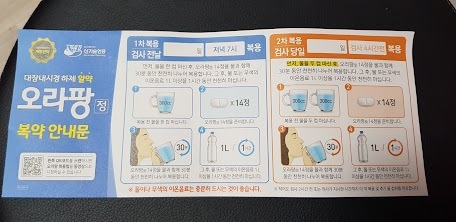 일주일 뒤 드디서 검사 전날 7시에 약을 먹기 시작했습니다.
