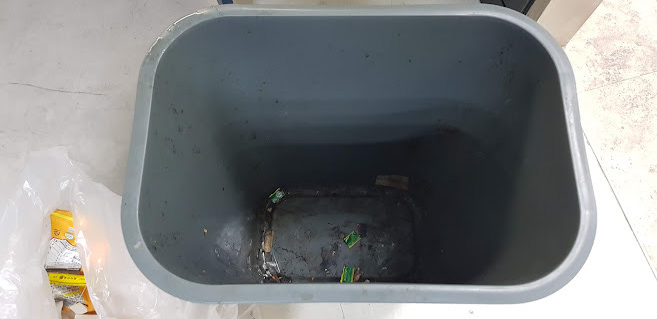 쓰레기통 자체가 너무 더러워서 깨끗이 씻고 비닐을 씌웠습니다.