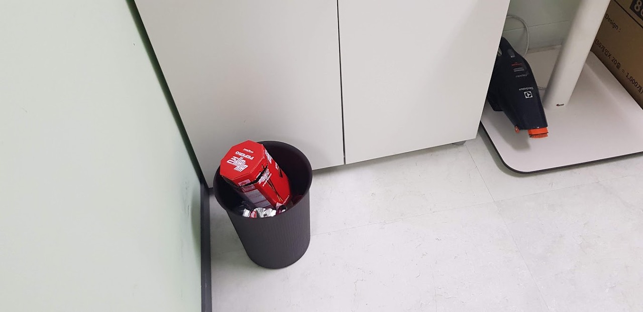 구석에 있는 쓰레기통에는 비닐도 씌워드렸습니다.
