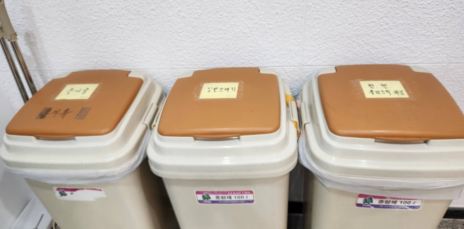 쓰레기통도 구분이 안되어 있어서 제가 직접 포스트잇으로 붙여서 분리했습니다.