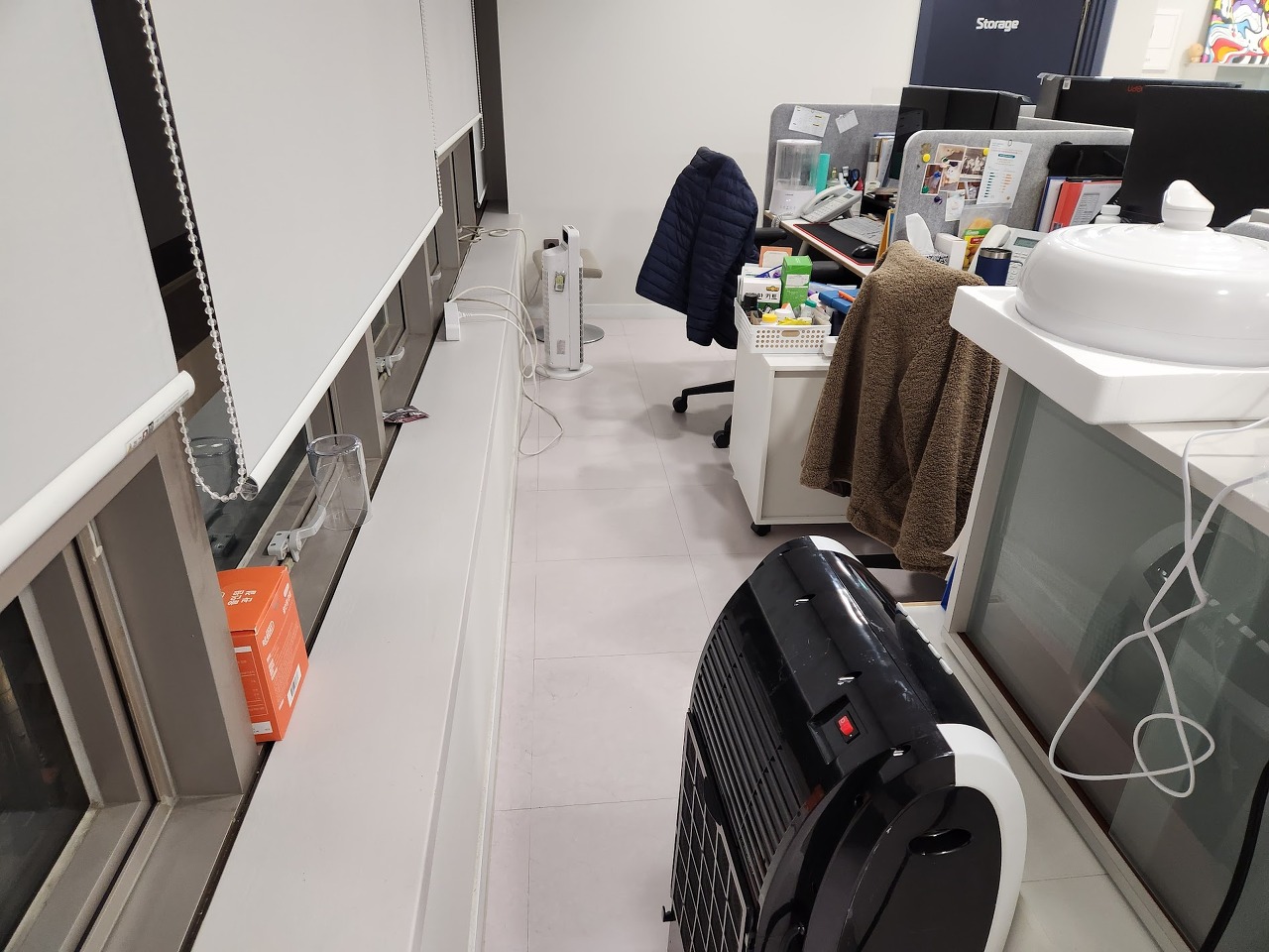 직원들은 업무가 바쁘다보니 청소에 신경을 잘 못 쓰게 됩니다. 그리고 건물에서 일하시는 청소 이모님들이 간단히 쓰레기 버려주시는데 그 분들은 건물 복도, 계단, 화장실을 주로 하시다보니 사무실까지 깨끗하게 하시기 힘듭니다. 그러니 사무실에는 점점 먼지, 머리카락이 쌓여 갑니다.