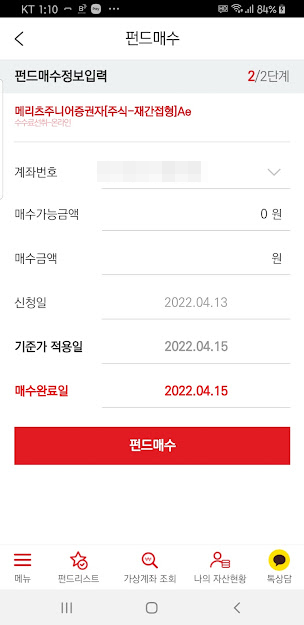 펀드매수를 선택합니다.