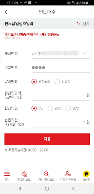 메리츠자산운용의 계좌개설 및 펀드투자 어플입니다.