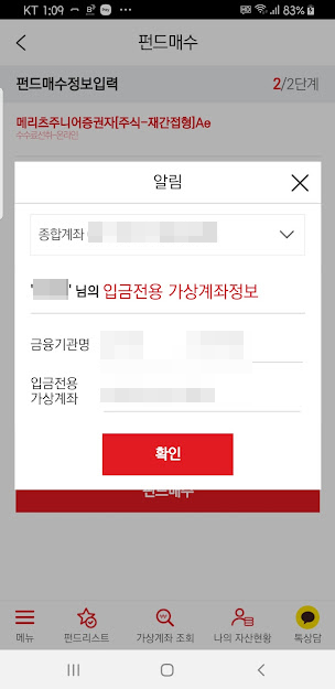 당연히 돈이 없으니 펀드 매수가 안됩니다. 메리츠자산운용은 펀드 구매에 직접 관여할 수 없고 우리은행을 통해서 진행합니다. 가입시 생성해준 우리은행 가상계좌에 돈을 입금합니다.
