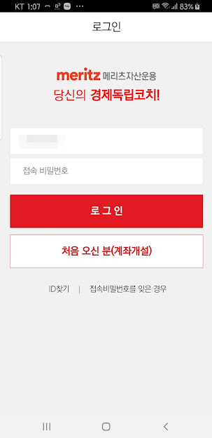 메리츠자산운용의 계좌개설 및 펀드투자 어플입니다.
