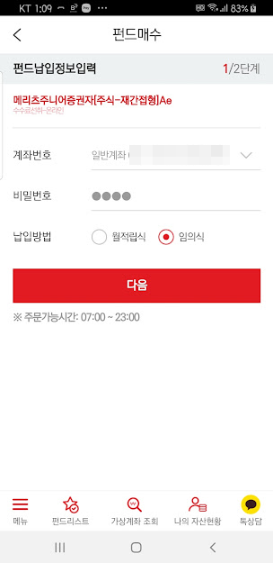 펀드매수를 선택합니다.