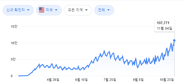 이날 코로나19 신규 확진자는 10만7천771명 발생했습니다. 지난달 30일 미국서 일일 확진자가 10만233명 발생해 최다 기록을 세웠다고 발표한 지 닷새만입니다.