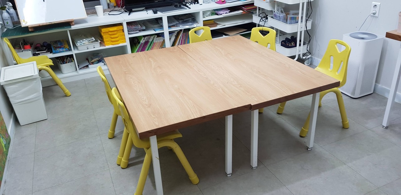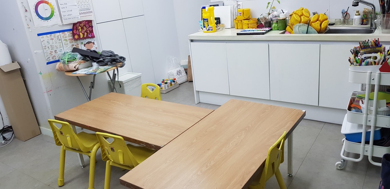 교실은 물감으로 늘 바닥이 얼룩져 있답니다. 이 정도는 너무 깨끗한 거예요. ㅋ
