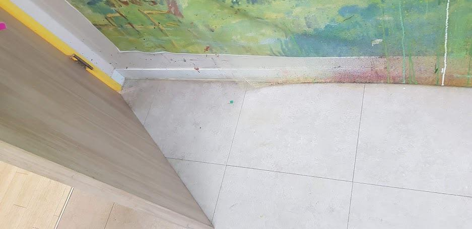 청소를 다해도 벽지에 묻은 물감은 지울 수가 없네요.