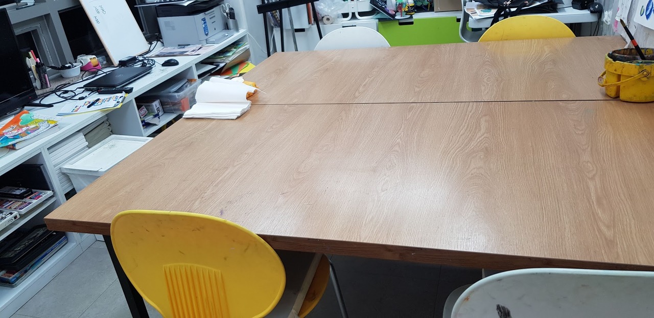 테이블 위 물감, 먹물을 없앴습니다.