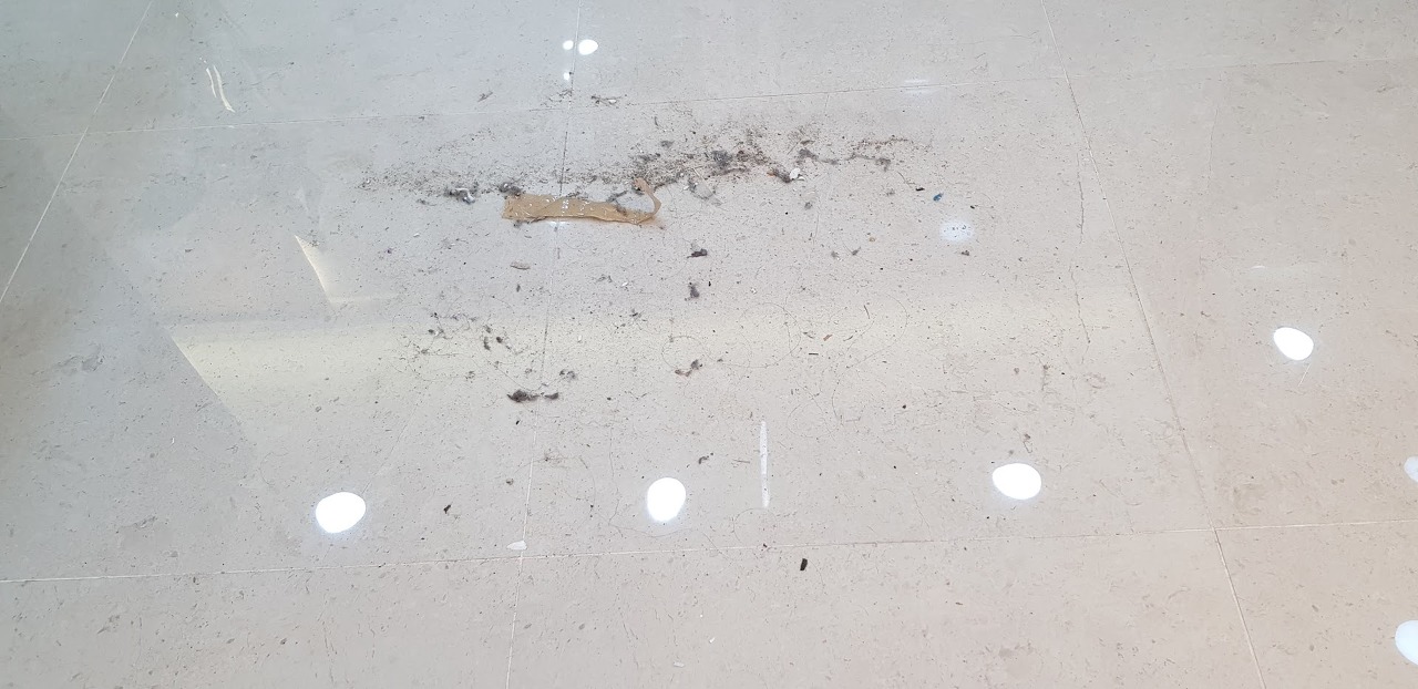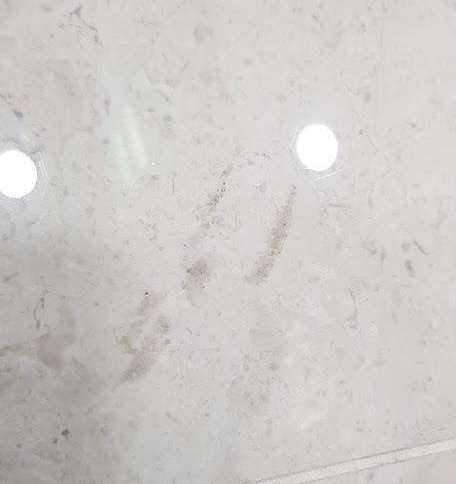 이 얼룩이 보이시나요? 타일 속의 무늬 같지만 본드같은 것이 묻어서 생긴 얼룩입니다.