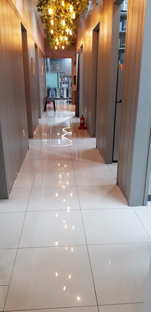 바닥이 폴리싱 타일입니다. 쉬운 바닥이 아닙니다. 걸레의 물을 잘 조절하지 못하면 청소하면서 먼지가 계속 남습니다.