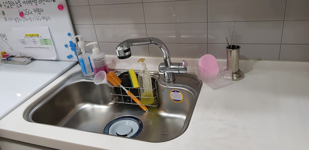 직원들이 가장 많이 사용하는 싱크대입니다. 역시 깔끔하게 정리합니다.