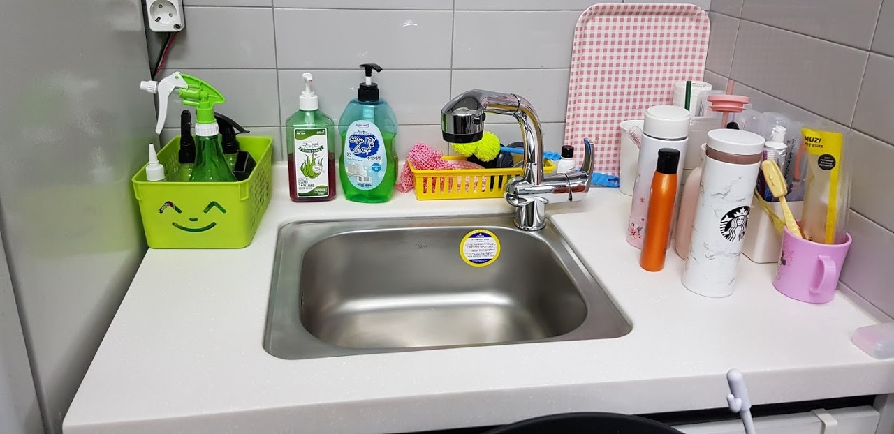 싱크대는 항상 음식물 찌꺼기가 남아 있는지 확인하고 안쪽까지 칫솔로 닦습니다.