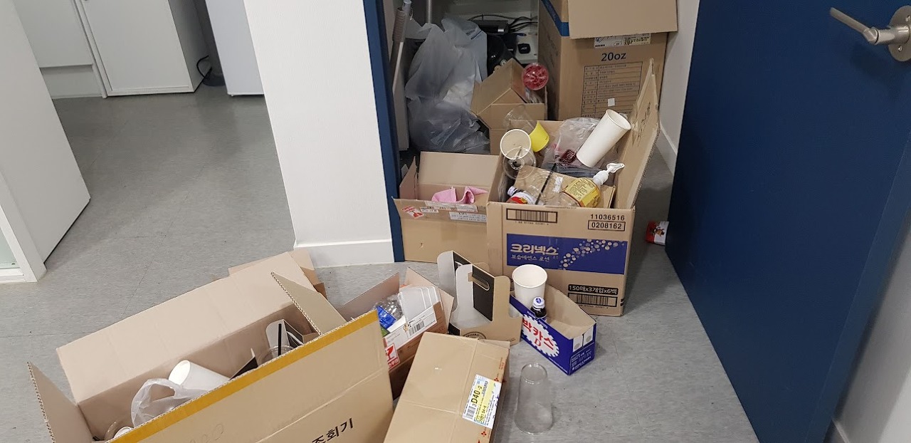 직원들이 놓아둔 재활용쓰레기도 분리해서 버렸습니다.