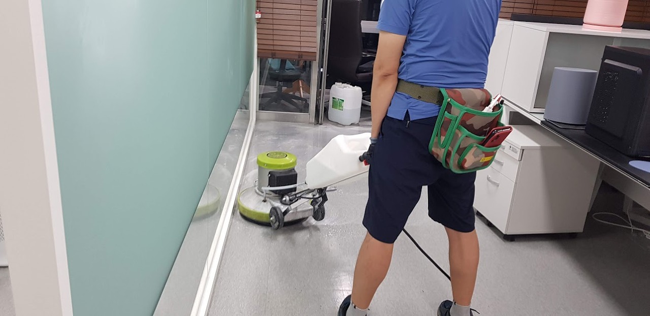 가양동에 있는 한 사무실에서 바닥에 왁스칠을 해달라고 연락이 왔습니다. 그래서 주말에 작업을 했습니다.