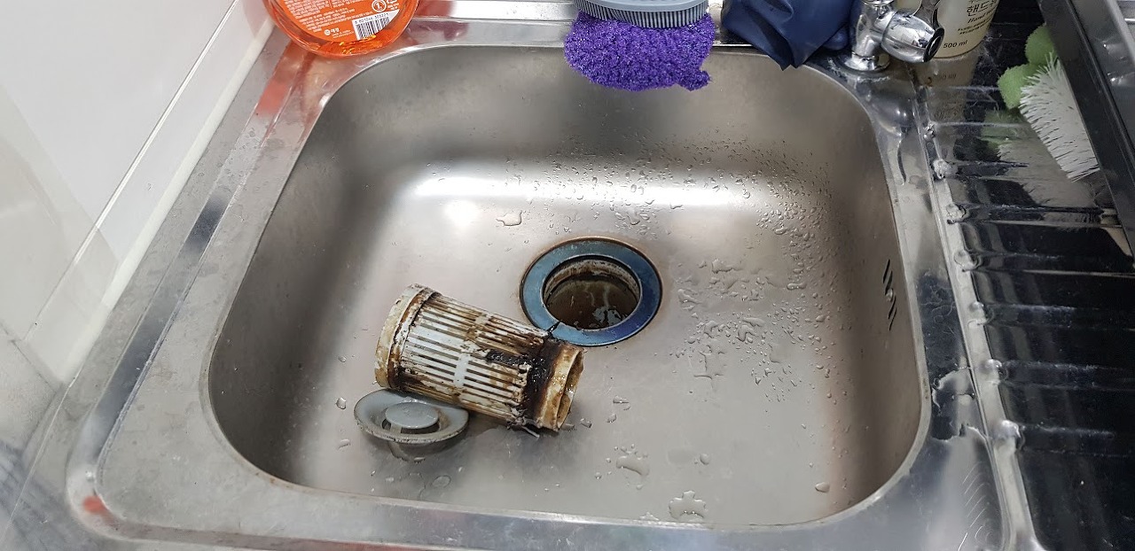 바닥만 왁스칠만 요청하셨는데... 직업병입니다. 싱크대를 그냥 지나칠 수 없습니다.
