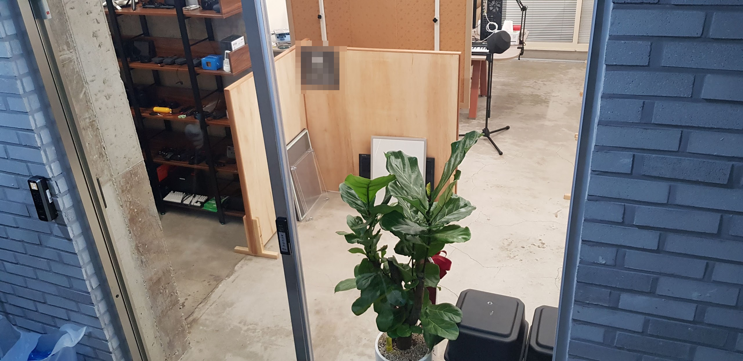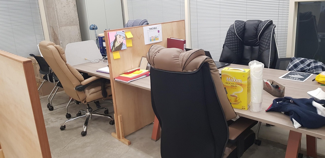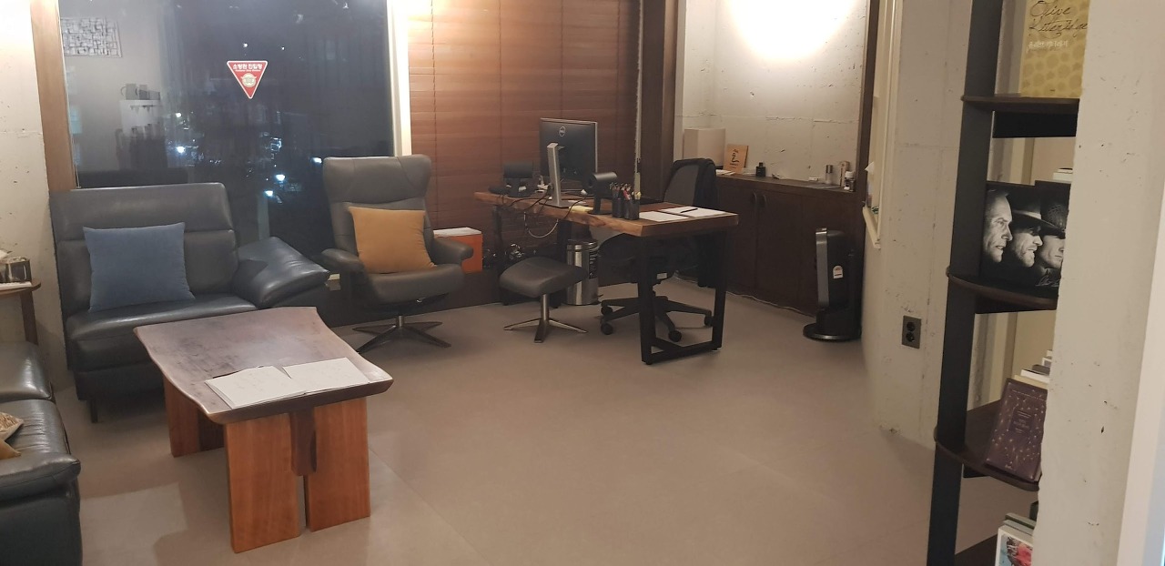 유리가 많은 사무실입니다. 출입문 지문도 잘 닦아서 없앴습니다.