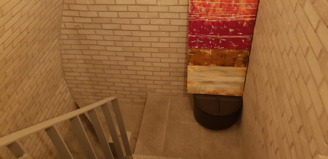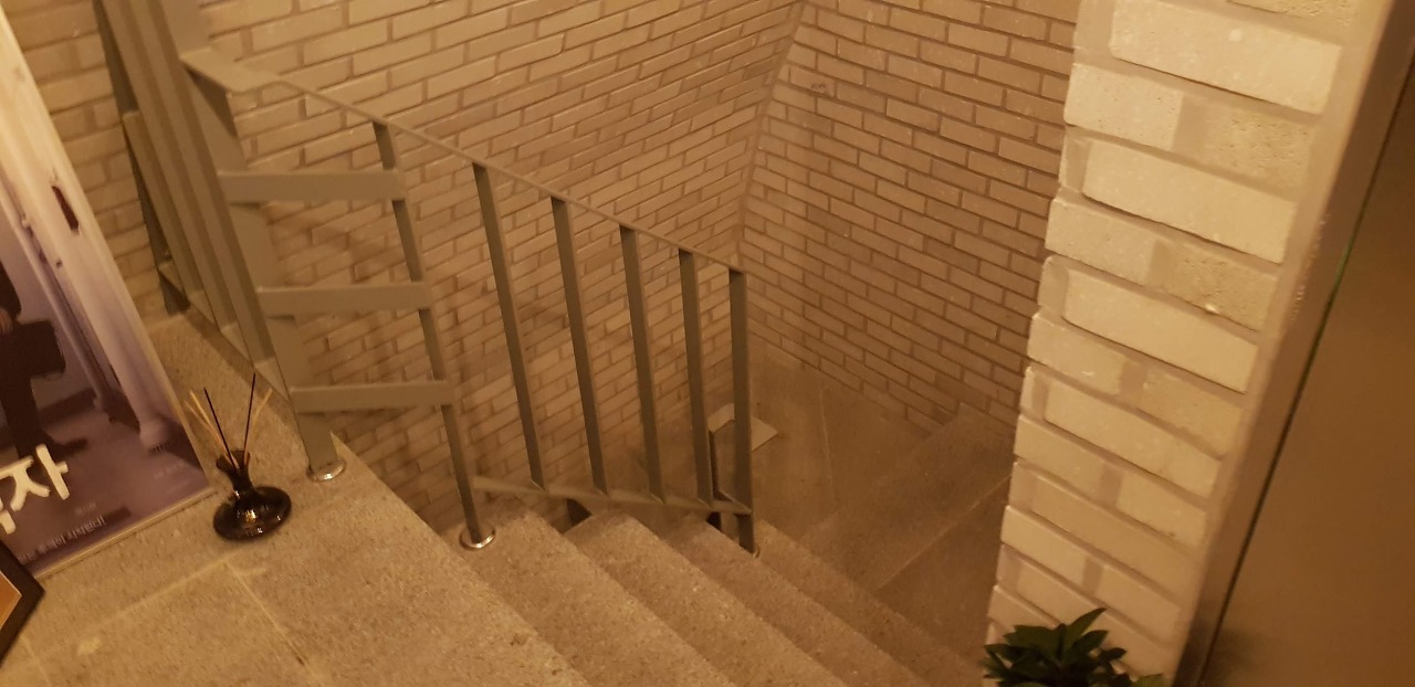 다시 계단을 청소하며 아래층으로 갑니다.