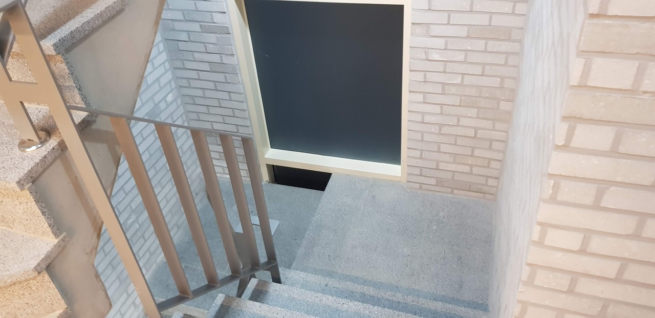 계단도 열심히 쓸고 닦고 난간도 내려가면서 먼지를 없애줍니다.