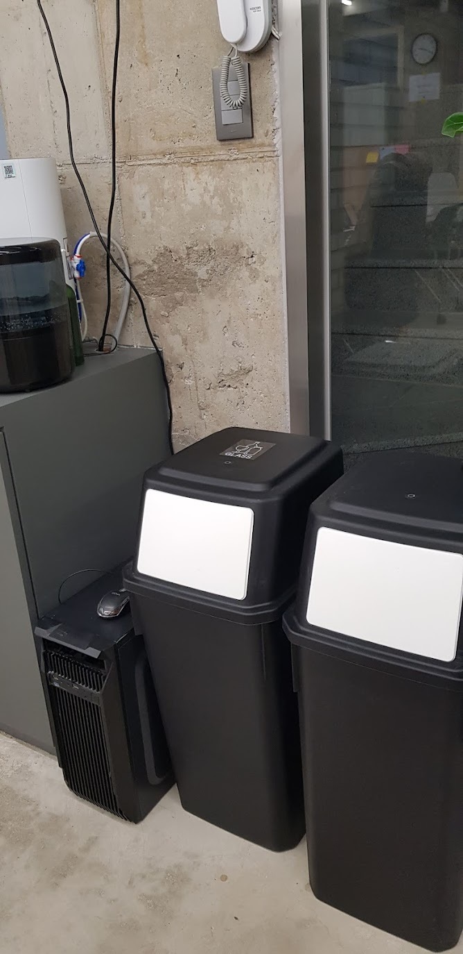 매 층마다 있는 쓰레기통은 깨끗하게 비우고 음료수자국이나 겉에 묻은 오물은 싹지워놓습니다.