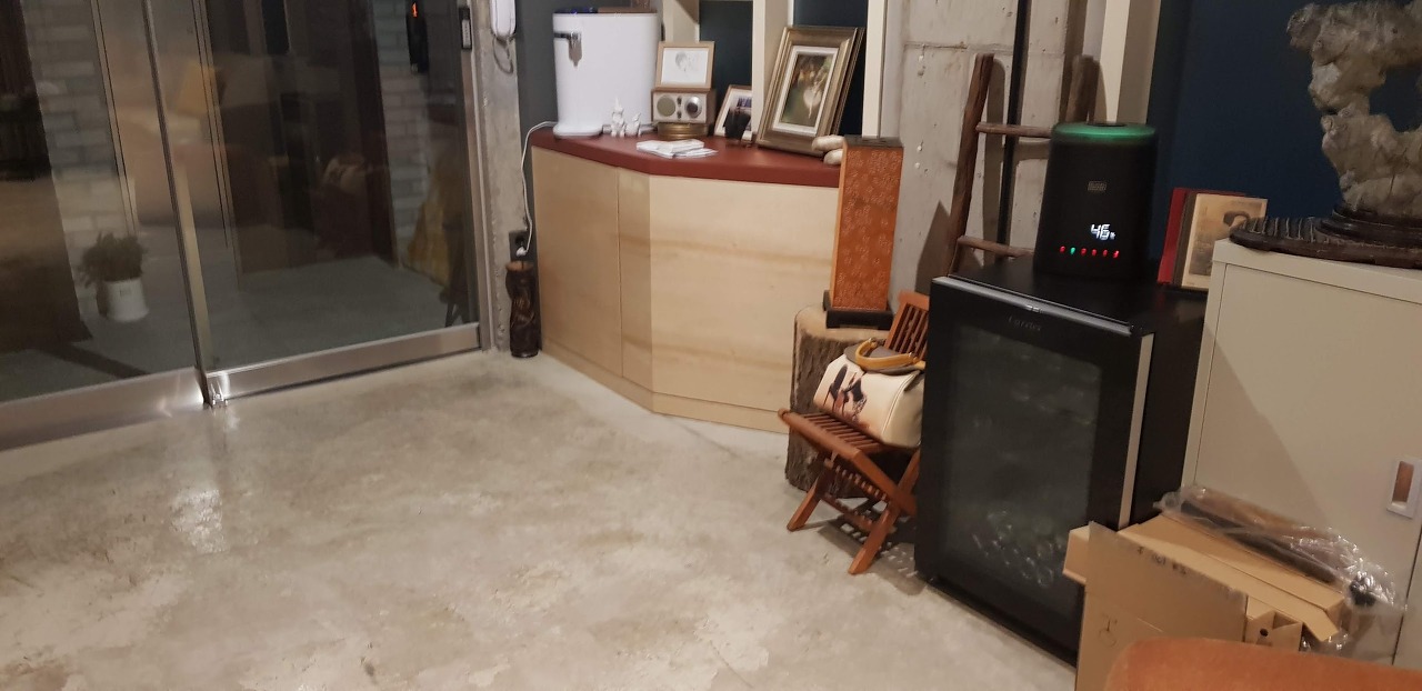 시멘트 바닥을 그대로 살린 인테리어입니다.