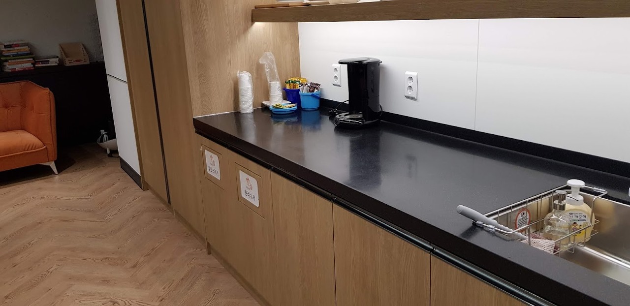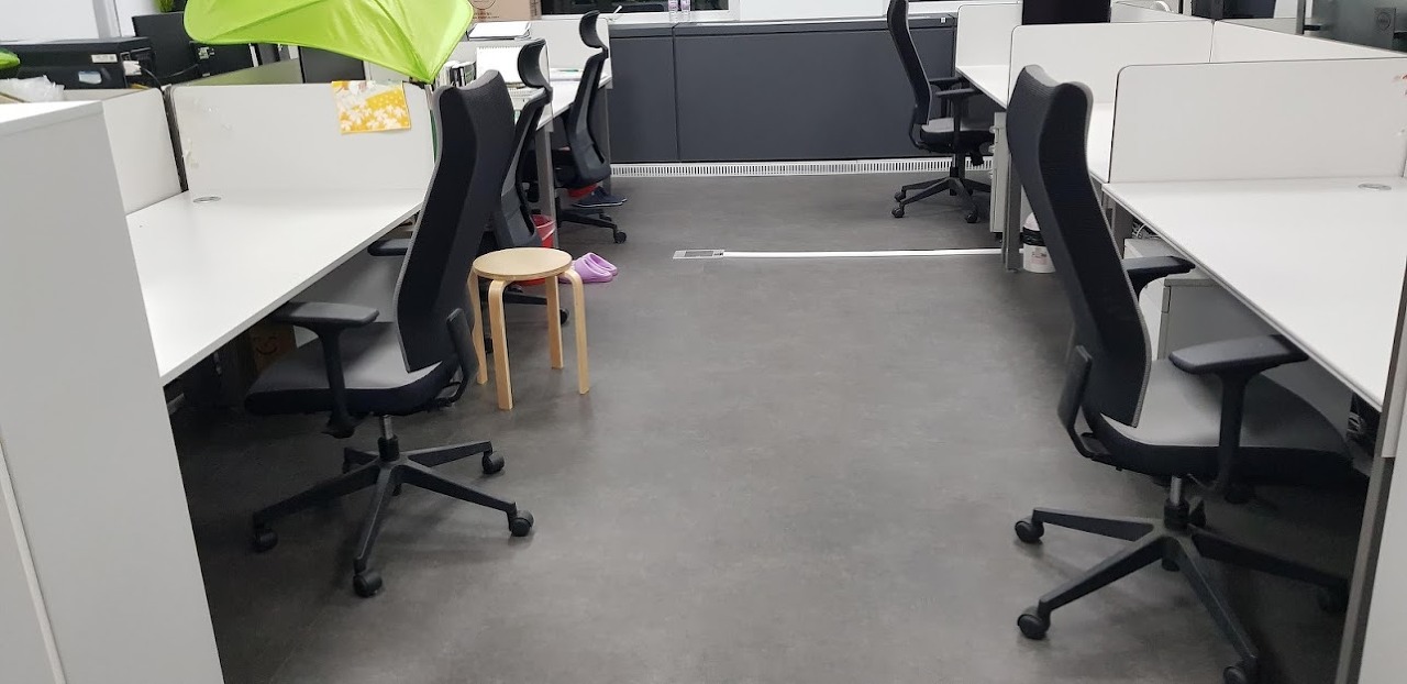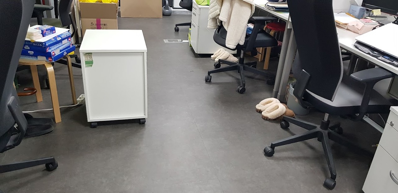 바닥이 어두운 데코타일이라 먼지가 쉽게 눈에 띄어서 수시로 관리를 해주어야 하는 사무실이네요.