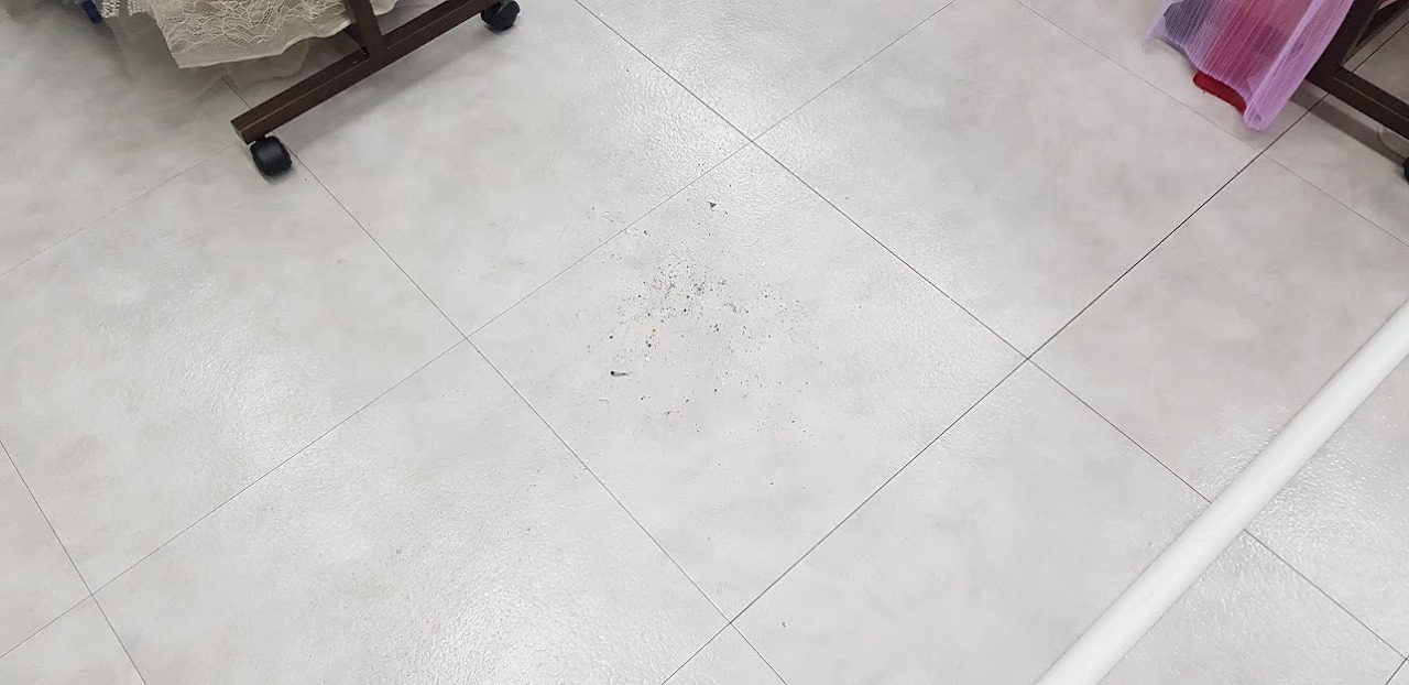 일주일에 한 번 하는 곳이라 바닥에 머리카락과 먼지가 가득합니다. 싹 없애 드렸습니다.
