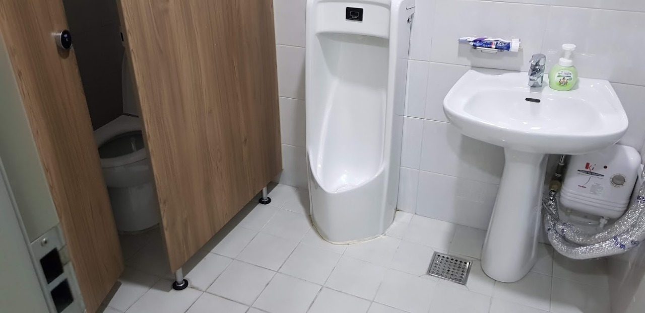 남자화장실도 동일한 과정을 거칩니다. 소변기도 깨끗이 청소합니다.
