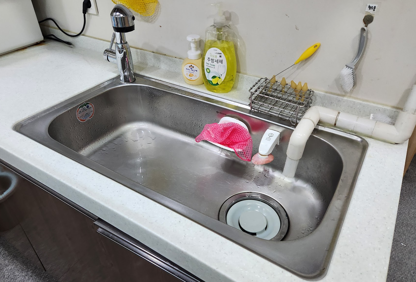 싱크대는 거름망 속까지 깨끗하게 닦았습니다.