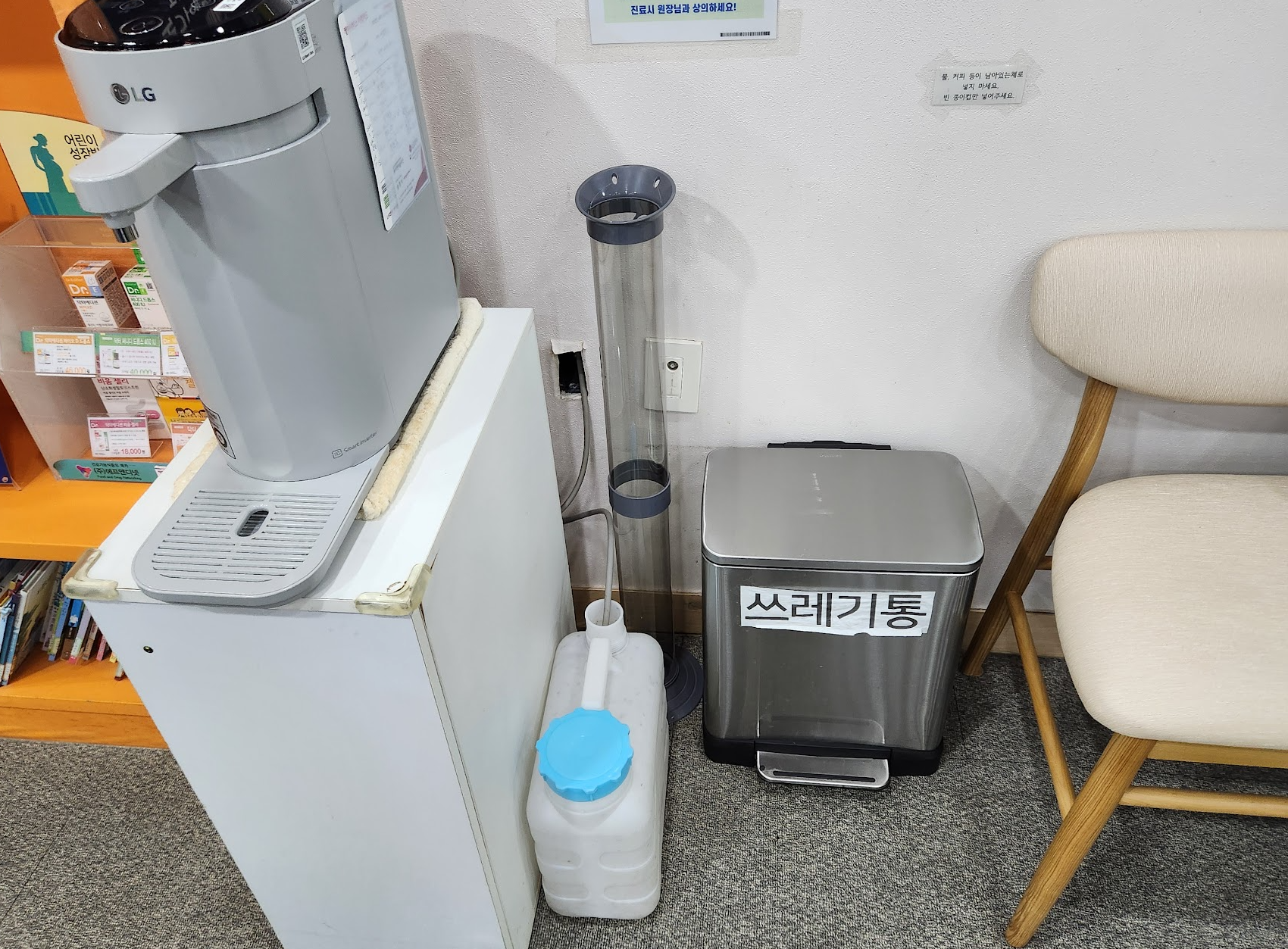 정수기 주위도 깨끗이 닦고 쓰레기통 자체도 씻었습니다.