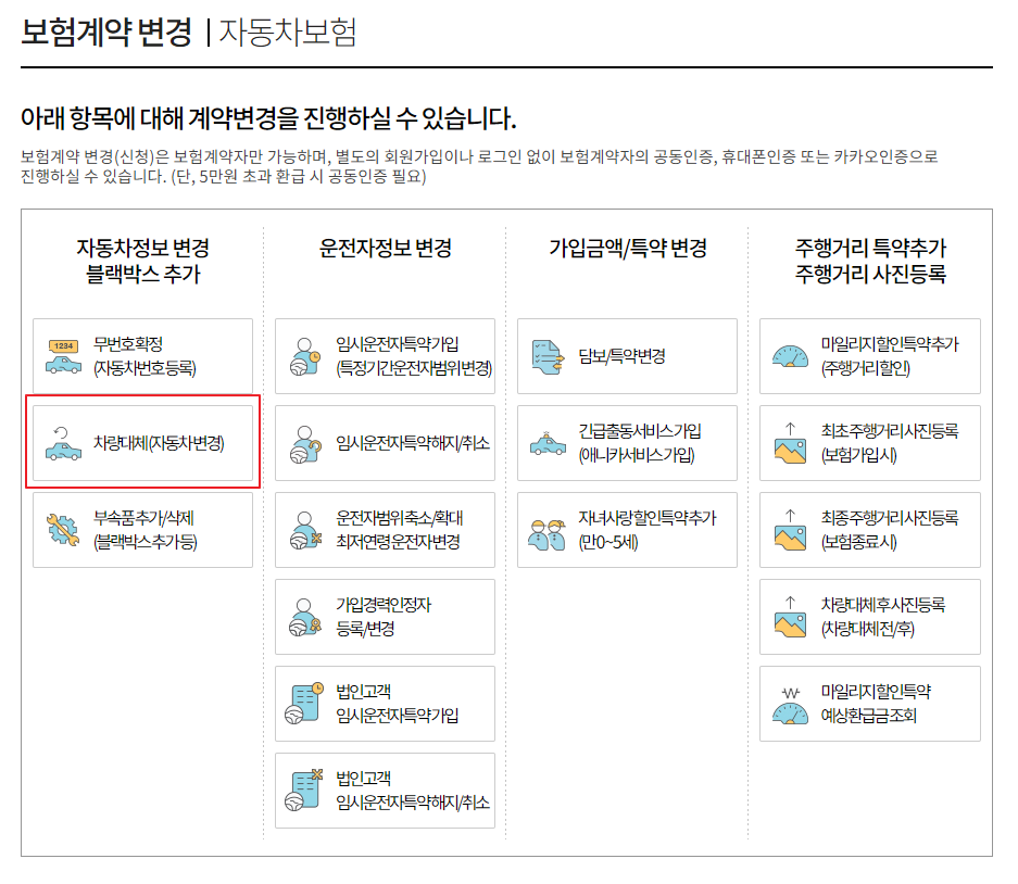 보험료는 어떡하지요? 차 값에 보험료 생각을 못했네요. 다행히 차량보험을 새로드는 것이 아니라 '차량대체'라는 기존 차량을 신규차량으로 변경하는 보험상품이 있었습니다.
