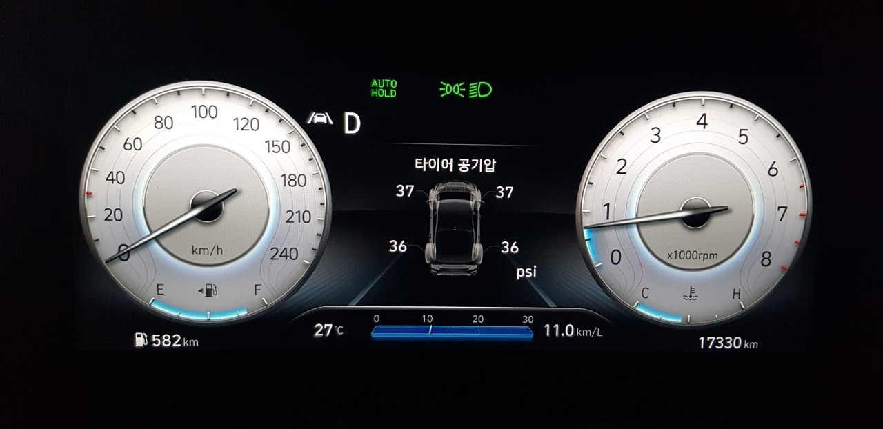 결국, 계기판에 표시되는 공기압보다 주유소에서 기계로 공기압을 체크하는 것을 믿어야 할 것 같습니다.