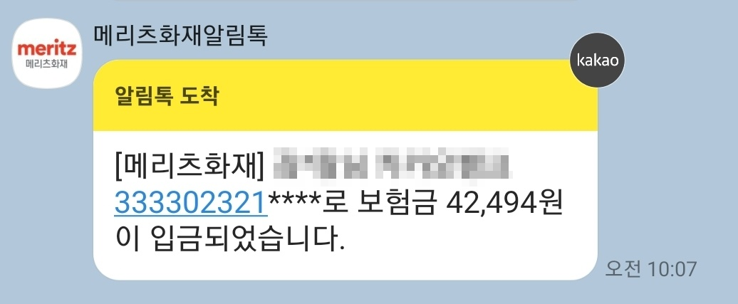 메리츠화재에 알러지 검사 영수증 전달했더니 42,494원이 나왔습니다.