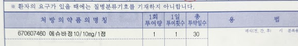 에슈바라는 약을 한 달정도 먹으라고 하시네요.