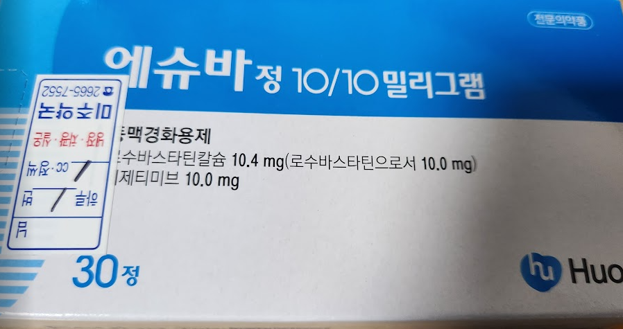 고지혈증약 에슈바정 약값은 의료보험 적용되어 30일 치 15,200원입니다.