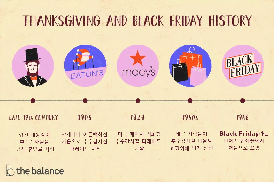 추수감사절 다음날은 19세기 후반 에이브러햄 링컨 대통령이 추수감사절 연휴를 11월의 마지막 목요일로 지정한 이후부터 비공식적으로 휴가철이 시작되는 날입니다. 하지만 그 날은 훨씬 뒤에야 '블랙 프라이데이'이라는 이름을 얻게 되었습니다.