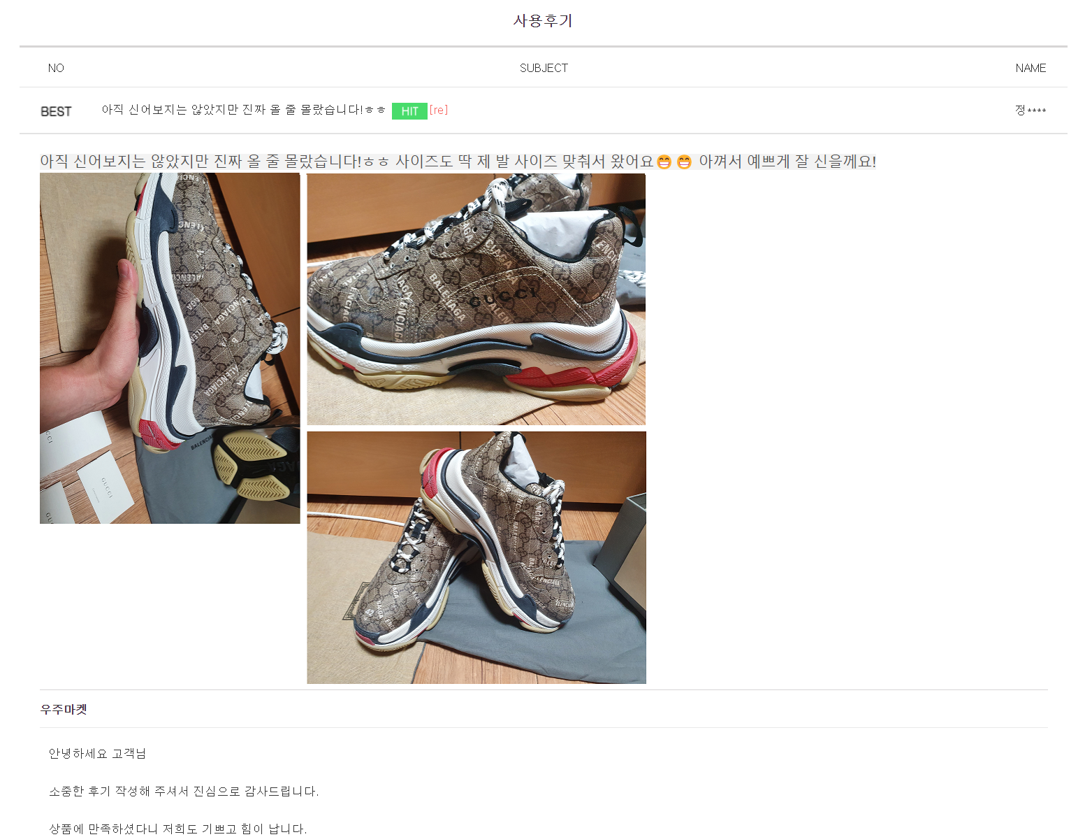 100% 정품만을 판매한다네요.