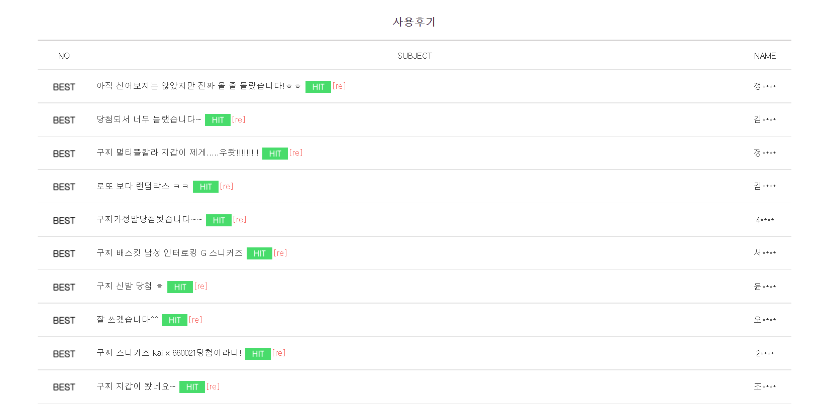 하나 클릭을 해보니 이렇게 후기가 작성이 되어 있습니다. 그럴듯합니다. 그런데 랜덤박스에는 남성용 여성용만 선택하게 되어 있는데 발사이즈는 어떻게 맞춰서 왔는지 궁금합니다.