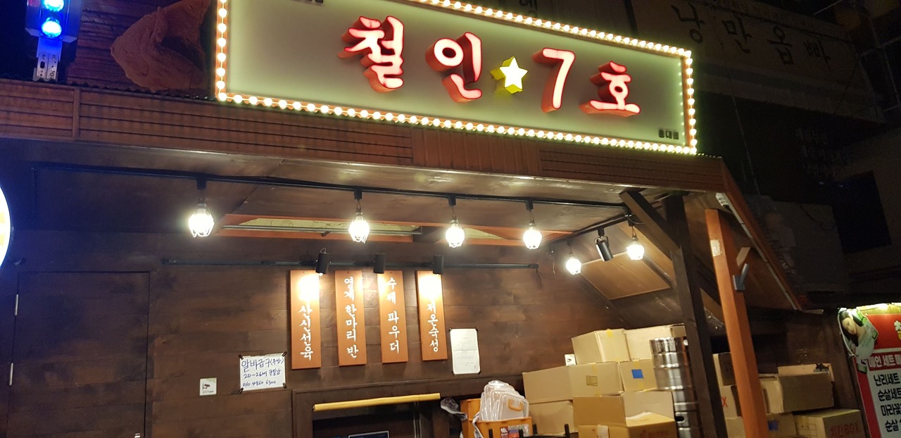 요즘 화제가 된 철인 7호라는 치킨 집. 밤에 홍대 근처에서 일하다보니 배도 고프기도 해서 찾아보게 되었습니다.