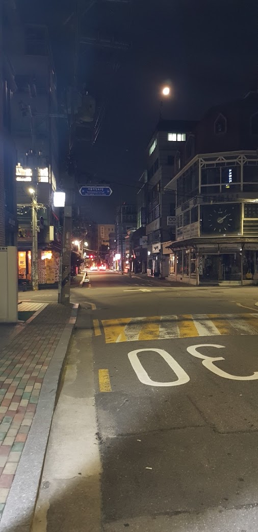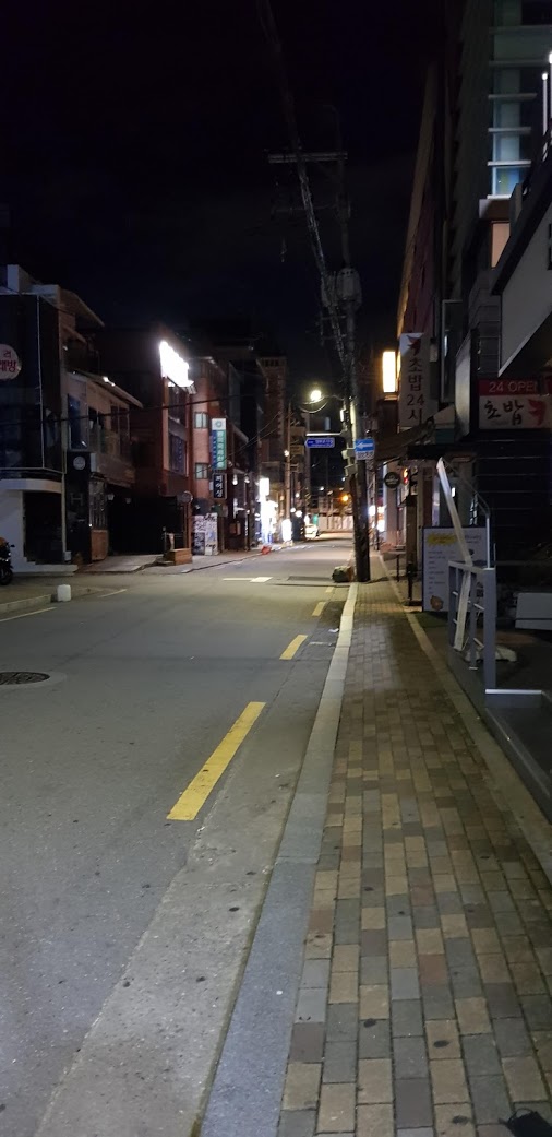 사진상으로 새벽 2시가 좀 넘었습니다. 학생들이 젊음을 느끼며 마음껏 돌아다녀야 할 때인데 이렇게 한 사람도 없는 경우는 처음 봤습니다.