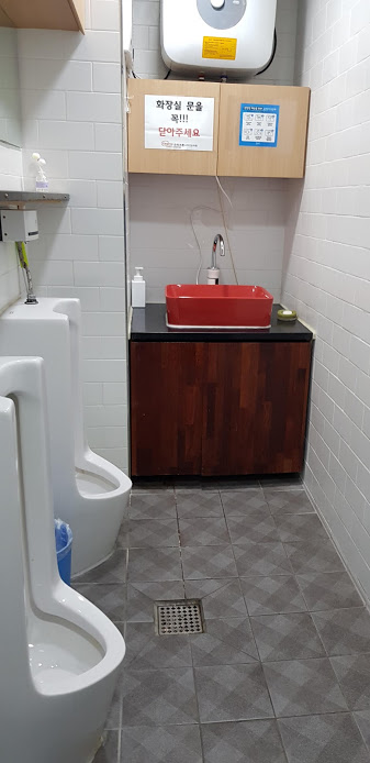 남자 변기도 냄새나지 않게 관리, 세면대도 깔끔하게 정리합니다.
