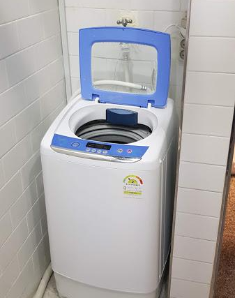 칠판을 닦고 난 후 칠판지우개들은 세탁기에 토스~. 빨래된 칠판 지우개는 널고 건조된 것은 선생님들이 가져가시도록 쌓아 둡니다.
