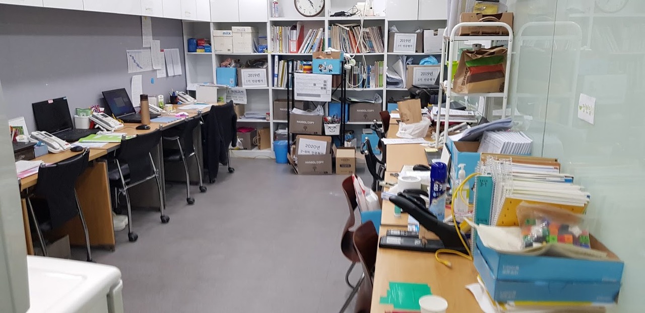선생님들이 오랫동안 계시는 교무실입니다. 책상밑 구석 구석 먼지도 제거해 드렸습니다.